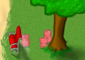 In progress: Wesley, Winston and Hamlet are back to face a new wave of Squealers-gone-bad! This game doesn't have a proper name yet, hence the cheap logo until we work it out :) The sequel to Squealer TNT is still in the very early stages of development, but maybe it will look a bit like this. The game utilises the power of C++ to take Wesley and Co. into the next dimension of explosive pig action in glorious 800x600 hicolour!